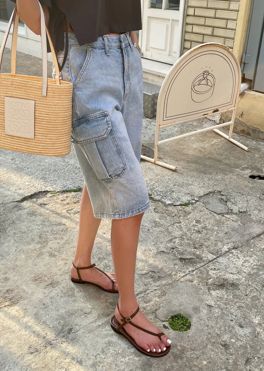ELINA | Oversized Denim Shorts Voor Dames met Cargozakken – Baggy, Stoer en Comfortabel