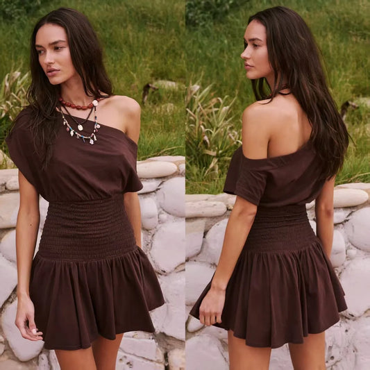 ELINA | Korte Katoenen Zomerjurk Met Off-Shoulder En Elastische Taille – Luchtig, Casual, Comfortabel