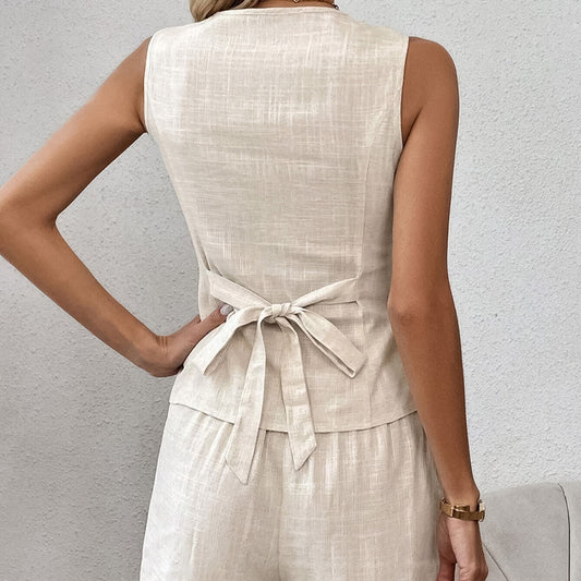 FAYLIN | 2-Delige Korte Linnen Dames Set – Chic en Luchtig