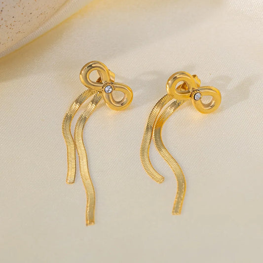 FAYLINN | Goudkleurige Dames Ketting En Oorbellen Set Met Strik Design– Tijdloos, Elegant & Vrouwelijk