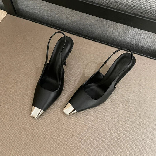 FEMKE | Slingback Hakken Van Patentleer Met Metalen Neus – Elegant, Gedurfd, Verfijnd