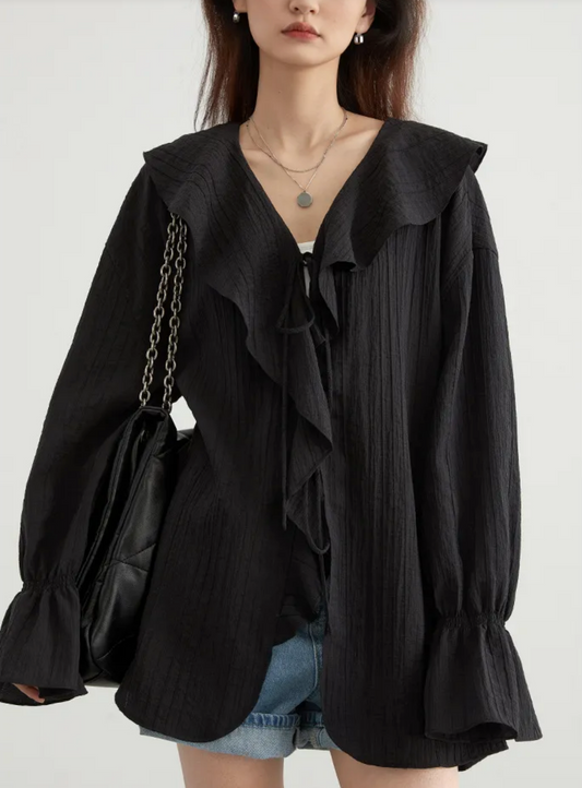 LEONA | Luchtige Dames Blouse met Ruffle Kraag – Luchtige Zomerstijl met Romantische Flair
