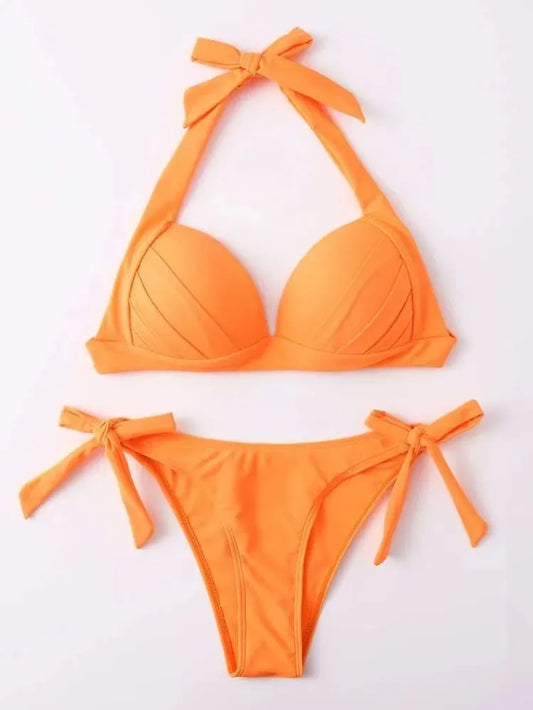PALOMA | Elegante Triangelbikini met Striksluitingen in Zomerse Oranje Tint