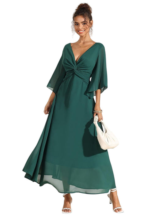 DENIA | Luchtige Dames Maxi Jurk met V Hals & Ruches