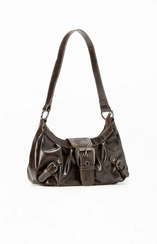 Dames Leren Schoudertas Met Gesp & Rits – Stijlvol, Compact & Altijd On-Trend