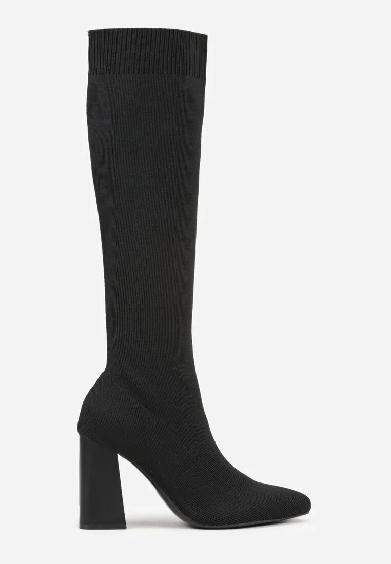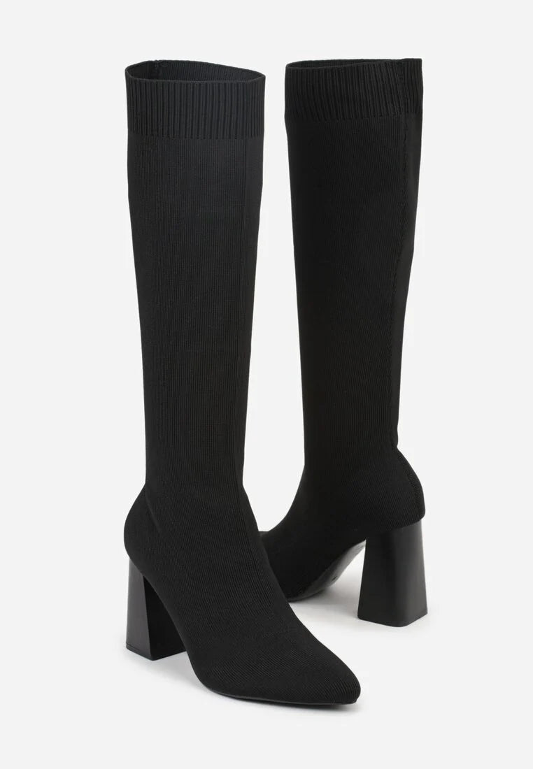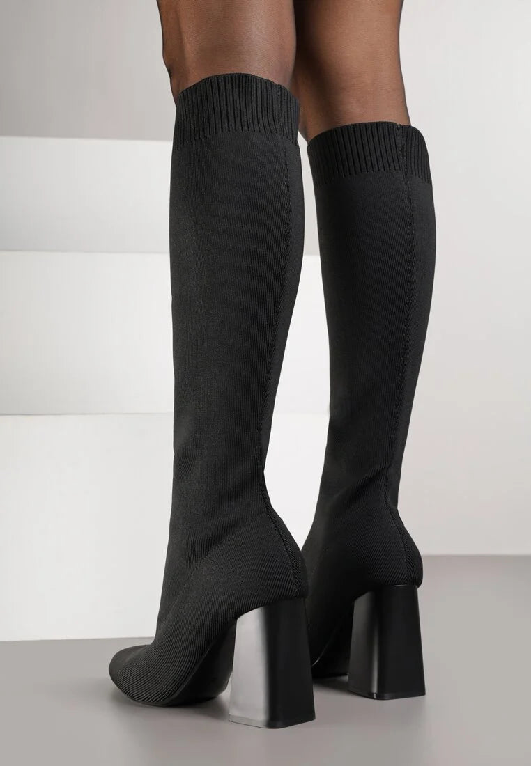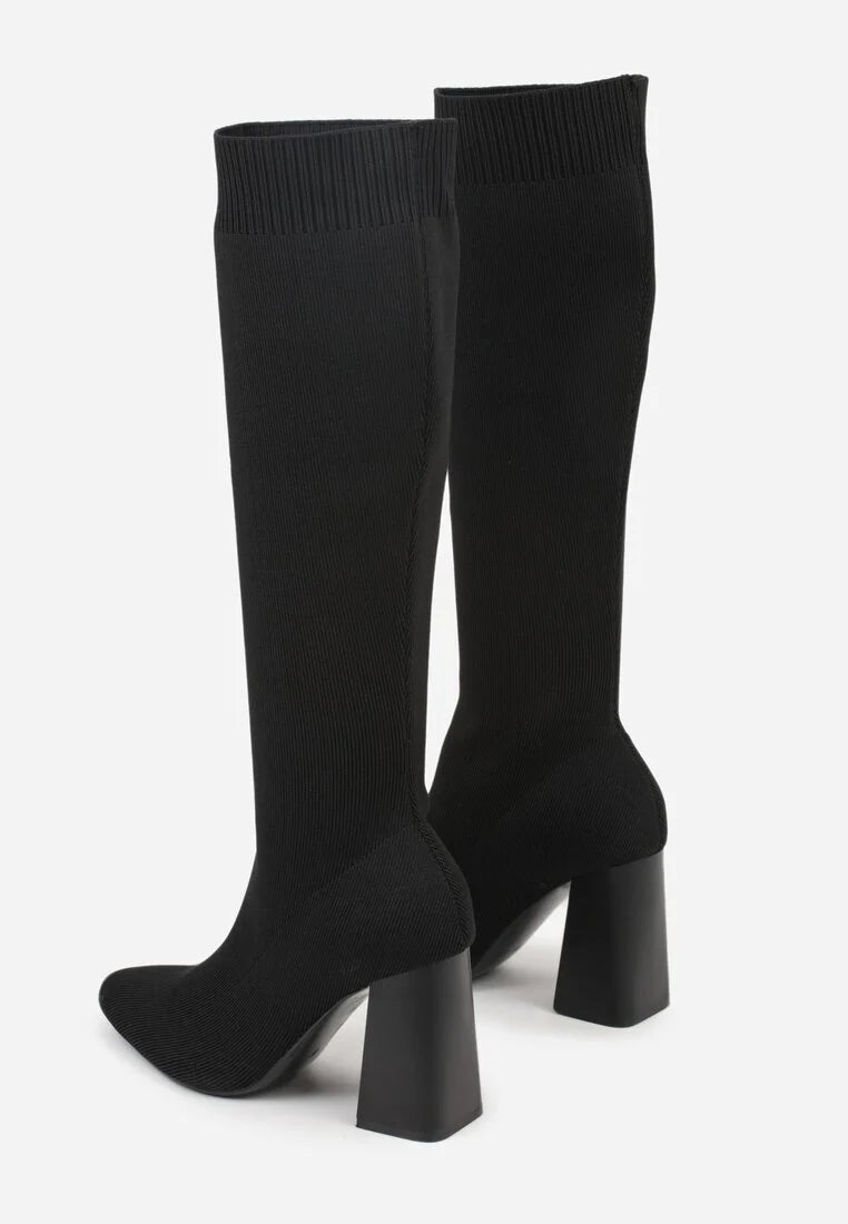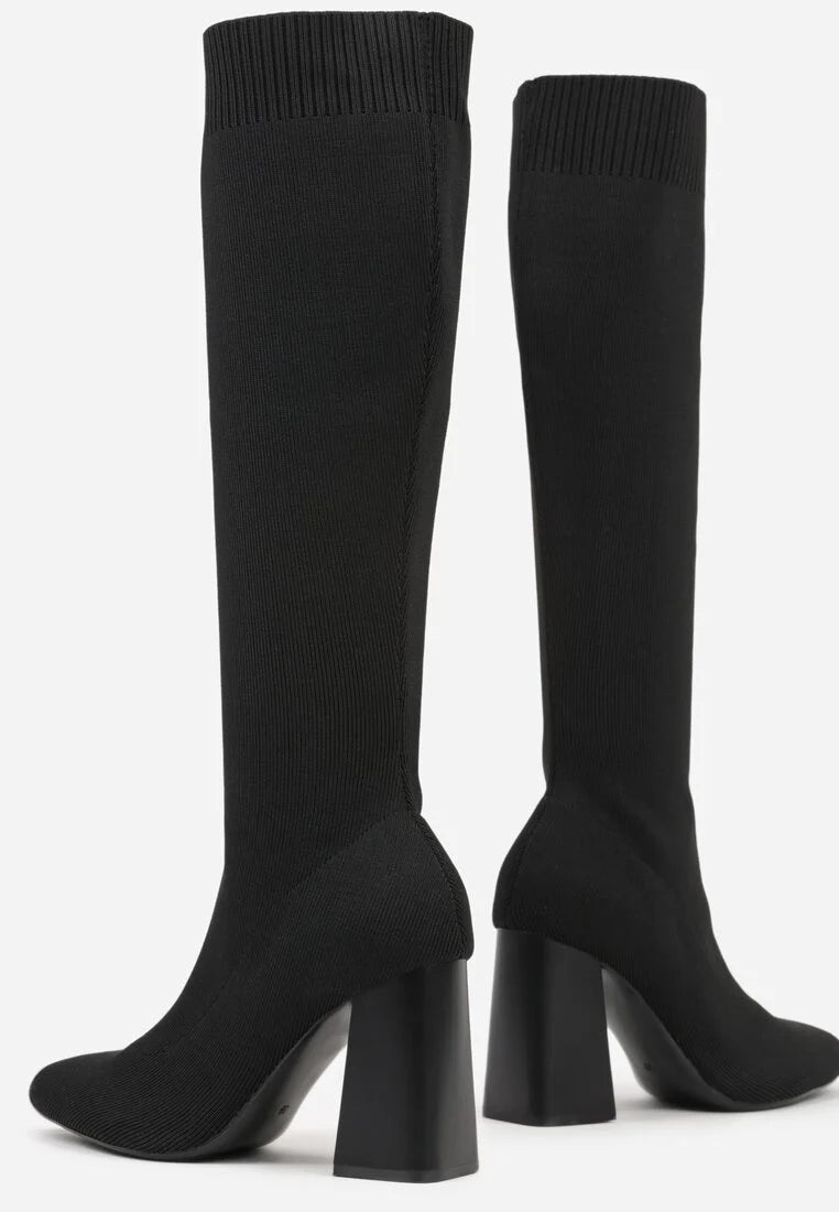 Deze kuitlange soklaarzen zijn ontworpen om jouw benen te flatteren en elke outfit een verfijnde upgrade te geven. Het zachte, rekbare breiwerk vormt zich perfect naar je benen, terwijl de stevige blokhak zorgt voor stabiliteit zonder in te leveren op stijl. Perfect voor kantoor, casual dagen of een avondje uit – deze laarzen tillen je look direct naar een hoger niveau.