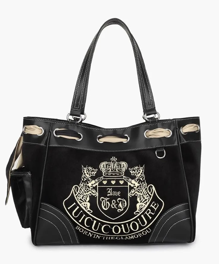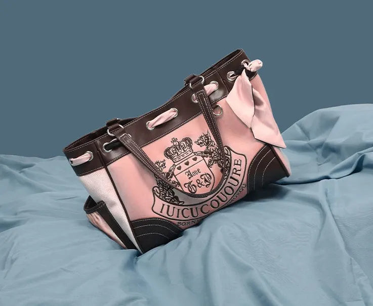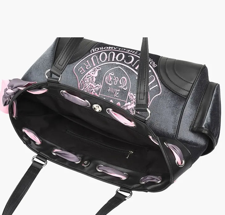 Velvet Schoudertas Met Roze Accenten | Y2K Vintage Geborduurd Statement Accessoire
