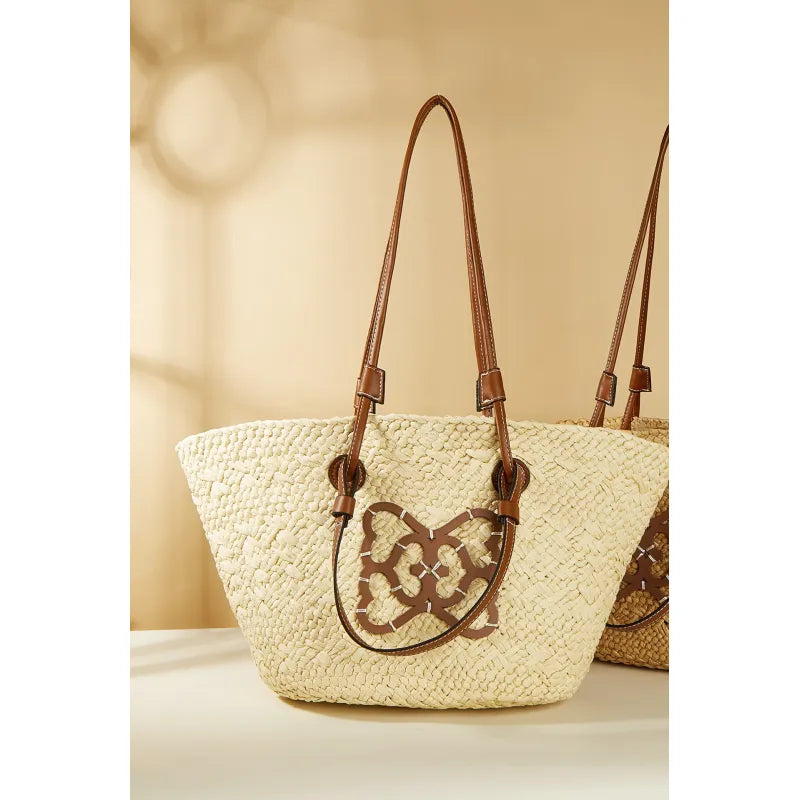 ANGELINA biedt de perfecte balans tussen formaat en finesse. Handgemaakt van duurzaam raffia met katoenen voering en afgewerkt met vegan leren schouderbanden – deze tas is dé eyecatcher voor jouw zomerdagen.