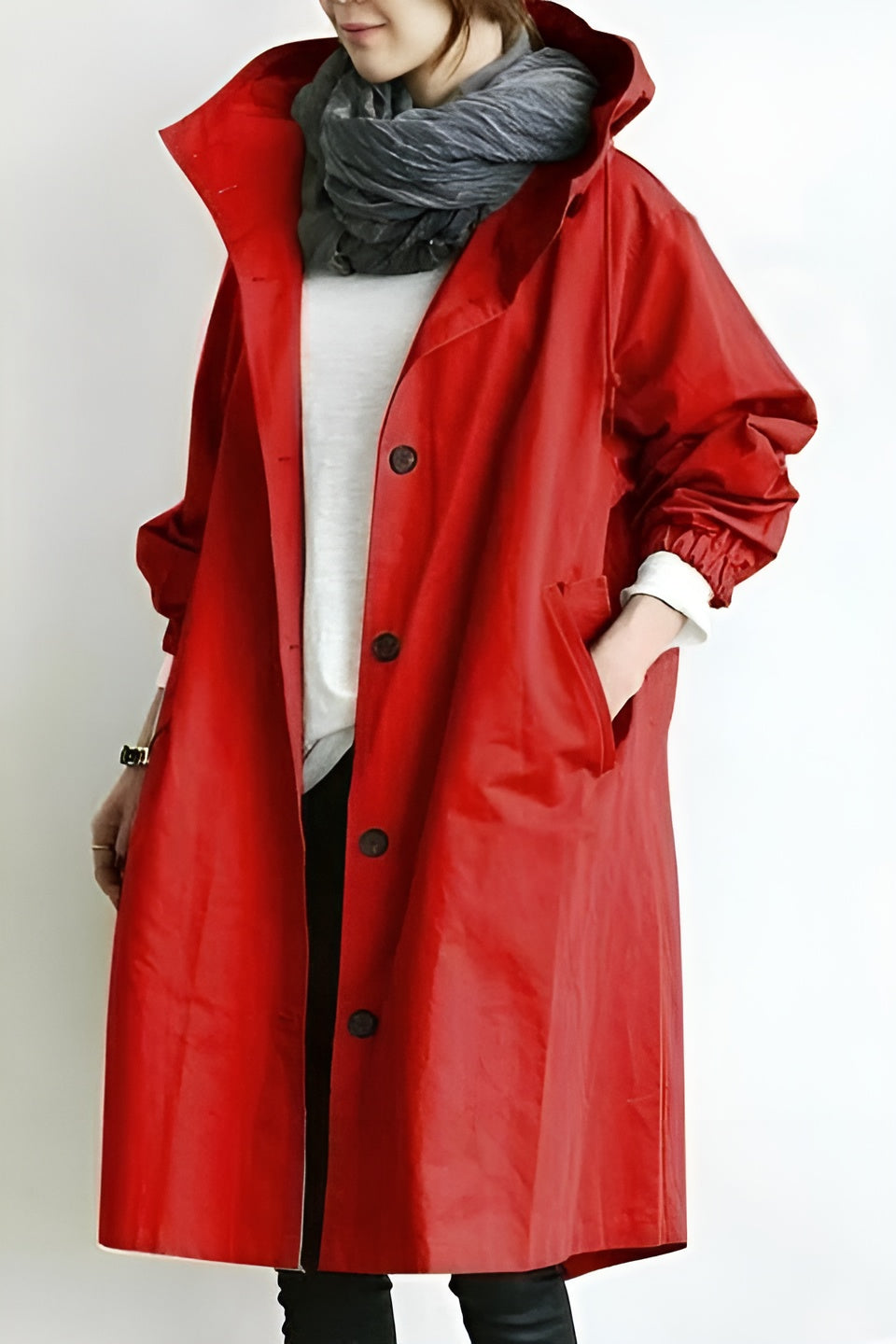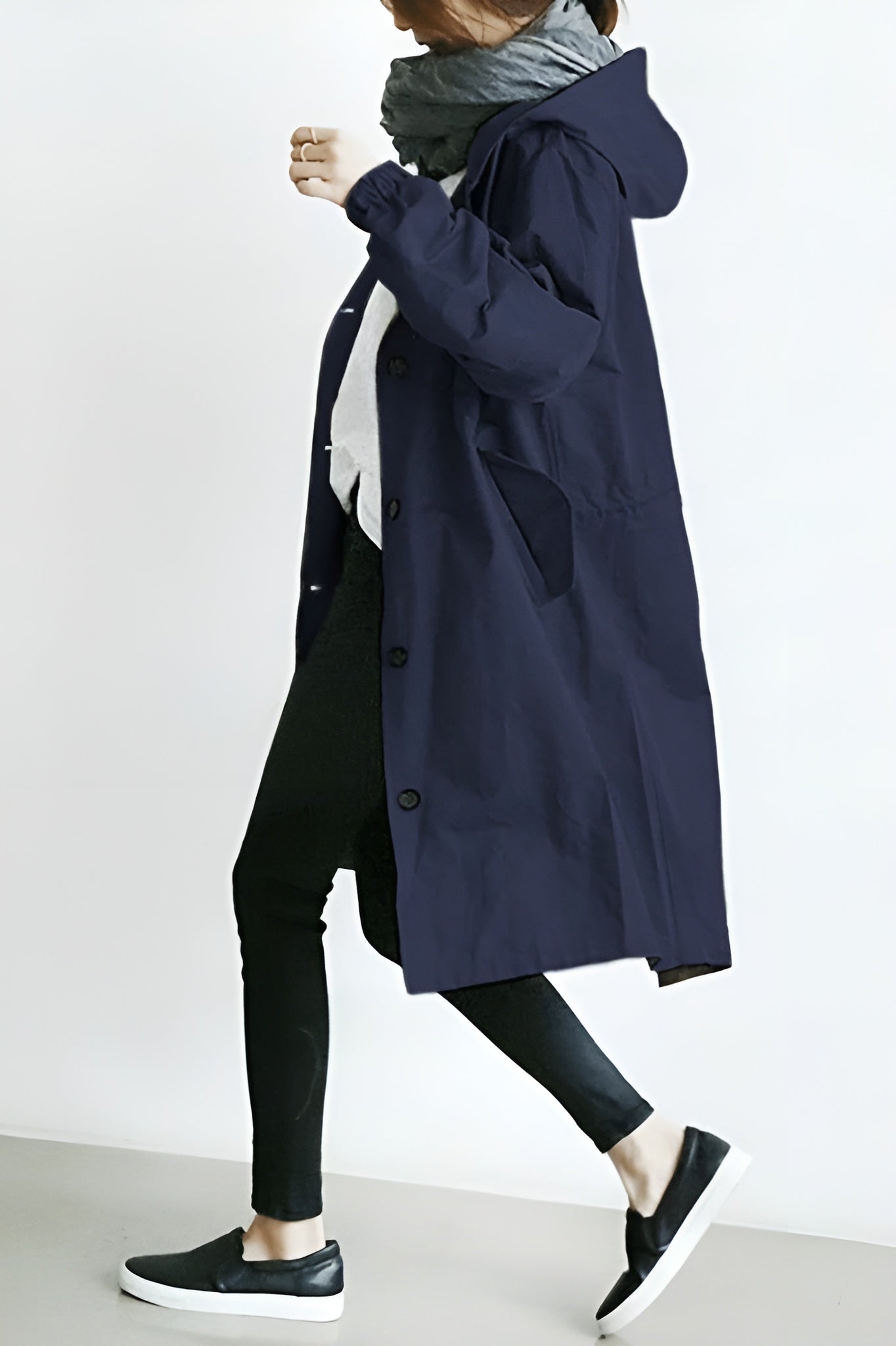 Dames Windjack Met Knopen En Capuchon – Lichtgewicht, Waterdicht & Stijlvol