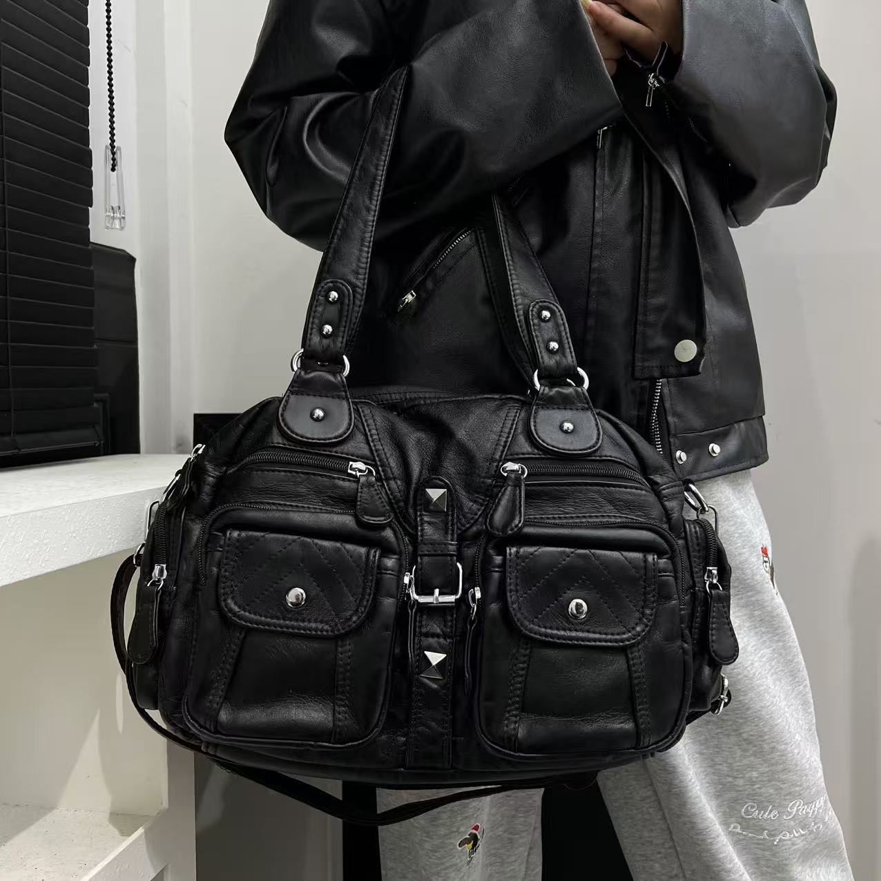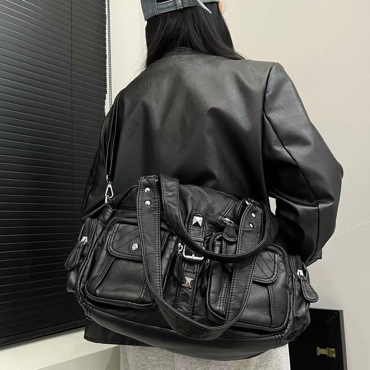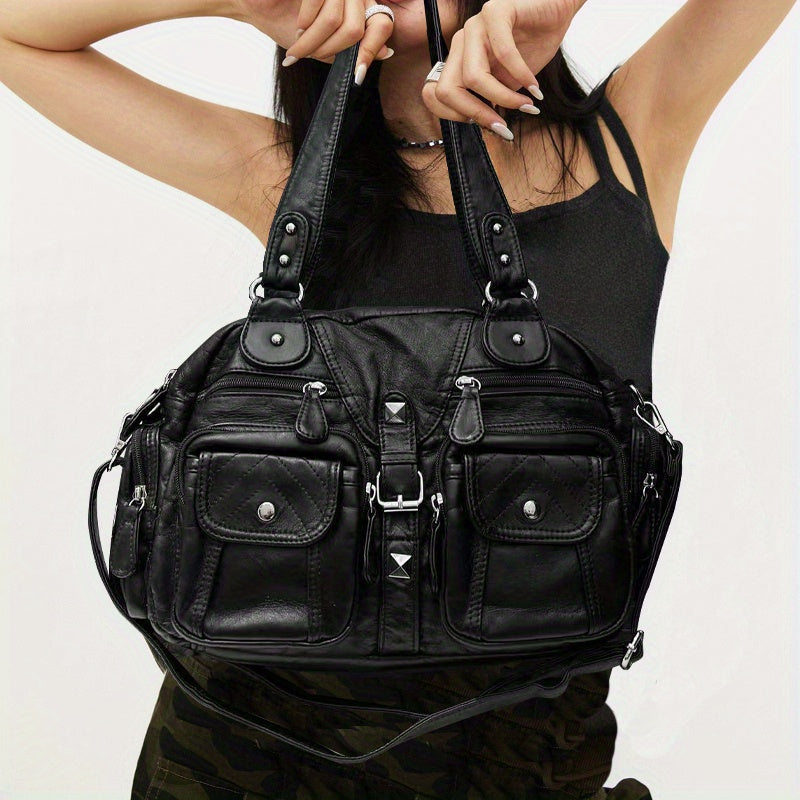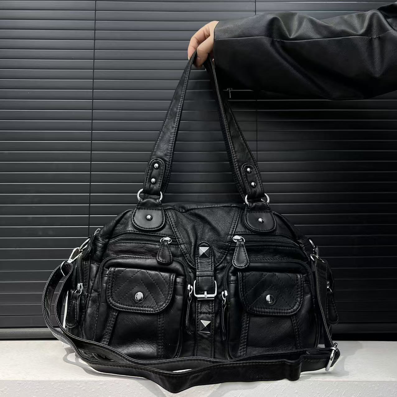 Deze retro leren dames schoudertas is dé ideale mix van vintage charme en moderne veelzijdigheid. Gemaakt van hoogwaardig faux leer voor een luxe look en lange levensduur, met een tijdloze zwarte afwerking die moeiteloos bij elke outfit past. Dankzij de slimme vakverdeling en ruime binnenkant neem je al je essentials georganiseerd mee, terwijl de stevige constructie zorgt dat je er jarenlang plezier van hebt.